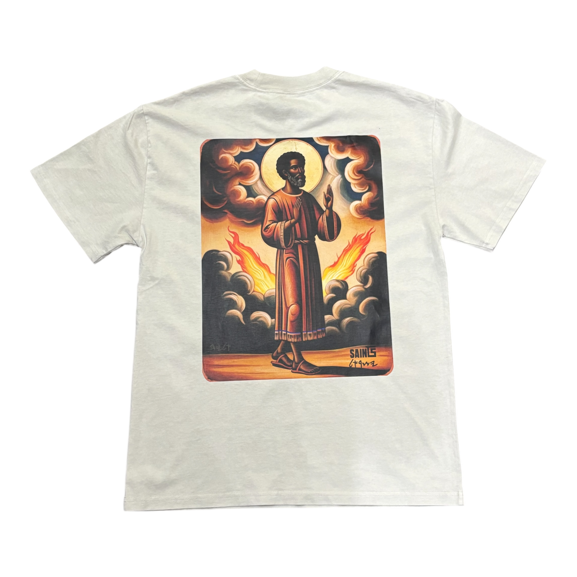 The Saint Elijah Tee from the Saint Collection is crafted from 100% heavy cotton, delivering exceptional durability and a substantial feel. Its Faded Bone color offers a sophisticated, muted tone that complements any outfit. Designed for those who value quality and longevity, this tee combines robust fabric with expert tailoring for a comfortable yet resilient wardrobe staple.
