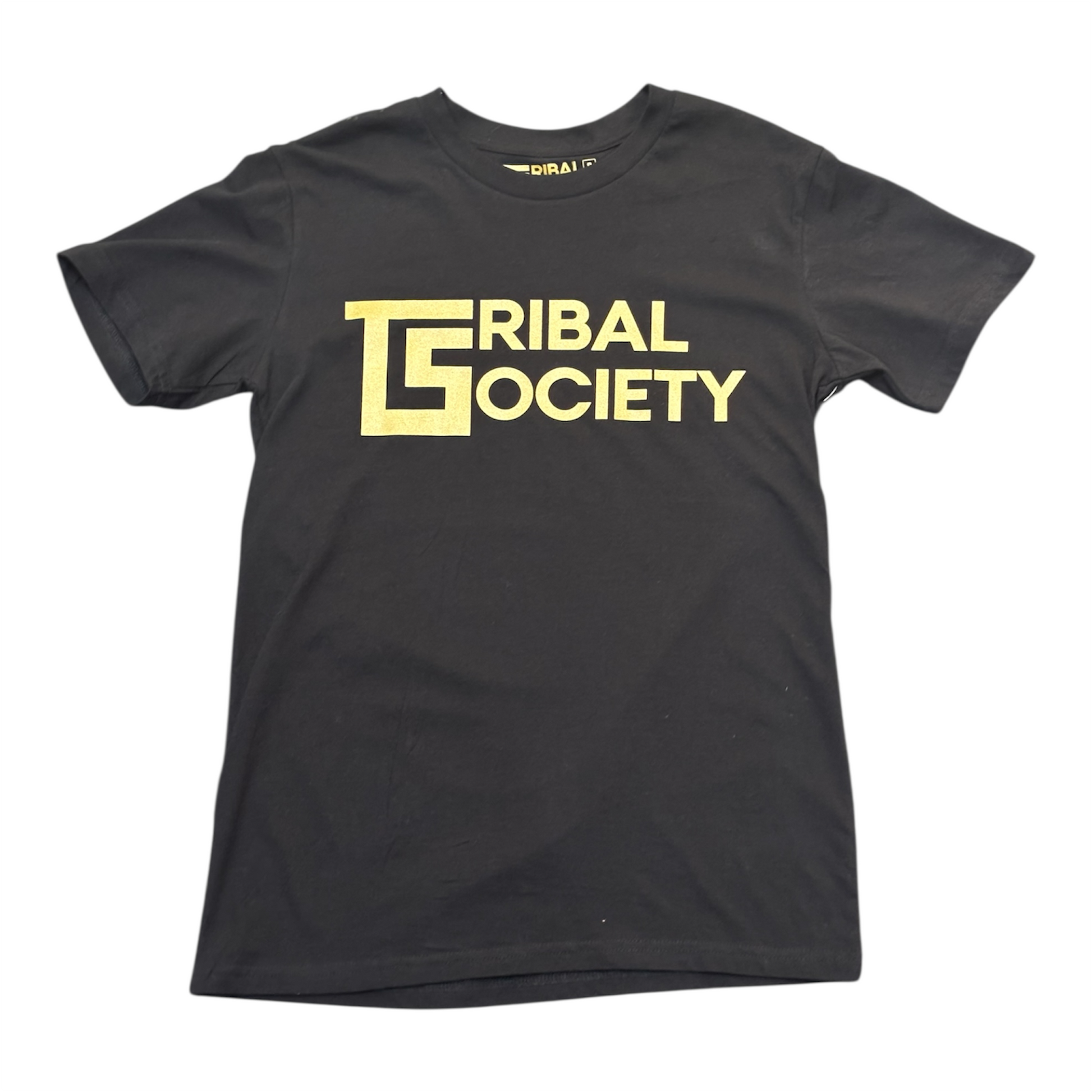 Crafted from 100% cotton, the Tribal Society (GOLD) Tee offers exceptional comfort and breathability. Its sleek black fabric is enhanced by a striking metallic logo printed on the front, combining style with subtle sophistication. This tee is designed for durability and everyday wear, making it a versatile addition to any wardrobe.